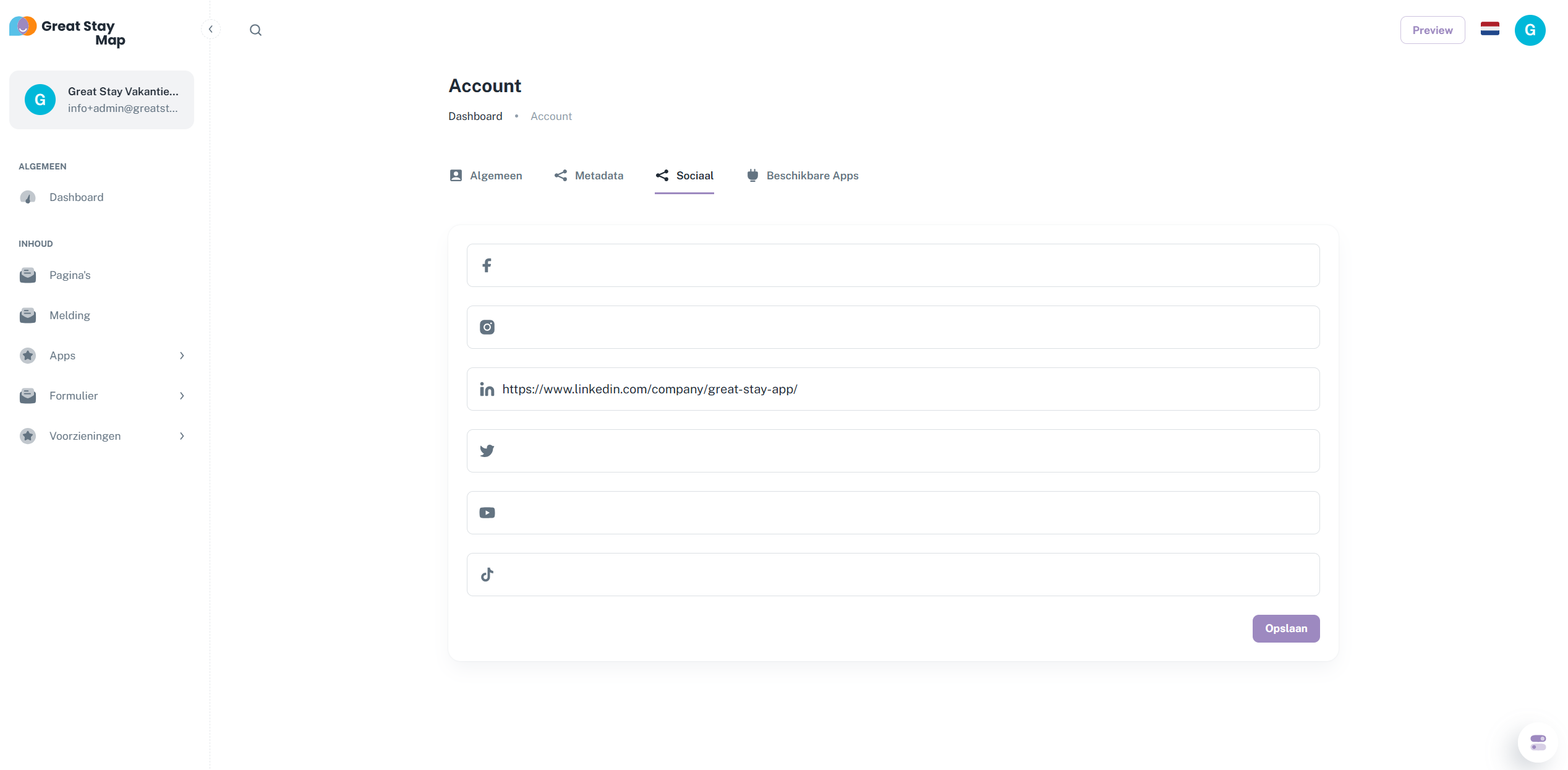 Bij de pagina Sociaal kunt u uw sociale mediakanalen toevoegen.