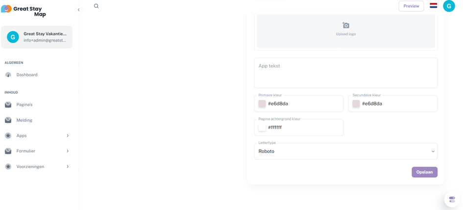 Wil u kleuradvies? Dat kan! Zoek contact met ons op, en wij kijken mee naar de webapp en welke kleuren mooi zijn om te gebruiken. Stuur ons een mail op office@greatstayapp.com of bel ons op +31 (0)85 40 15 336