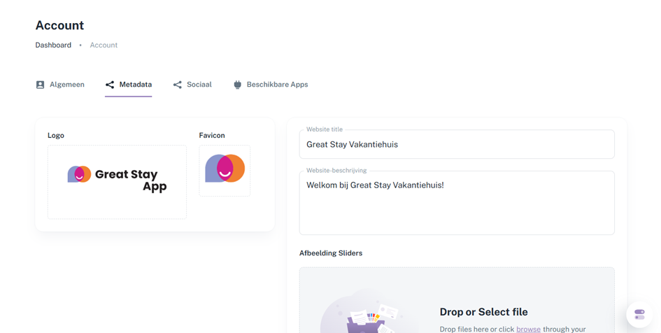 1. Druk aan de linkerzijde bovenaan waar de naam van uw accommodatie staat, waarnaast de eerste letter van de accommodatie groot in een cirkel staat