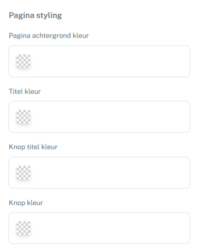 Echter raden wij aan om geen gebruik te maken van de pagina styling, naast de Pagina achtergrond kleur. Alle tekst op nieuwe pagina's zal automatisch zwart zijn, de secundaire kleur is vaak in lijn met derest van de webapp en de Pagina achtergrond kleur is standaard wit. Voor de leesbaarheid is het het beste om een lichte kleur als achtergrond te hebben, en de tekst zwart te hebben.