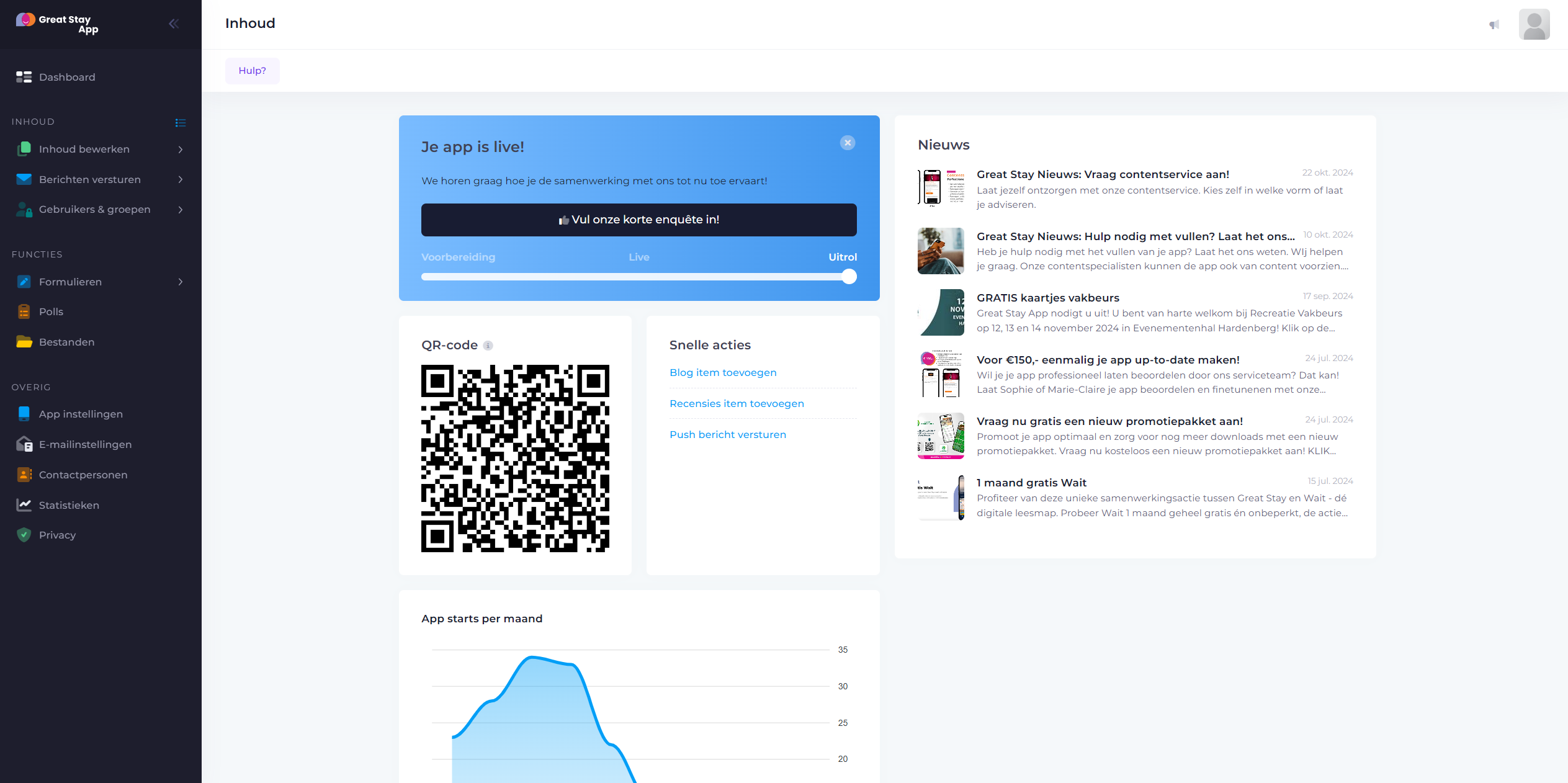 Loop je ergens tegenaan, en kun je de oplossing niet op ons Helpcenter vinden? Stuur ons een mail op office@greatstayapp.com, vul ons vragenformulier in of bel ons op +31 (0)85 40 15 336