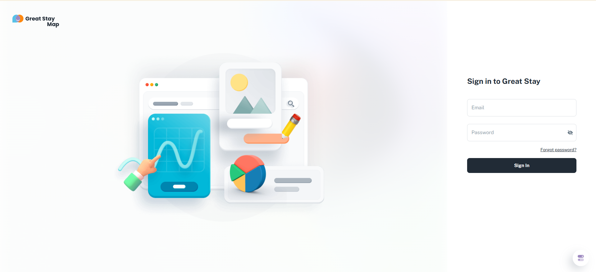 The URL to log in to the CMS is admin.greatstaymap.com and you will have received your username and password in the email. If you do not have this, please contact us.