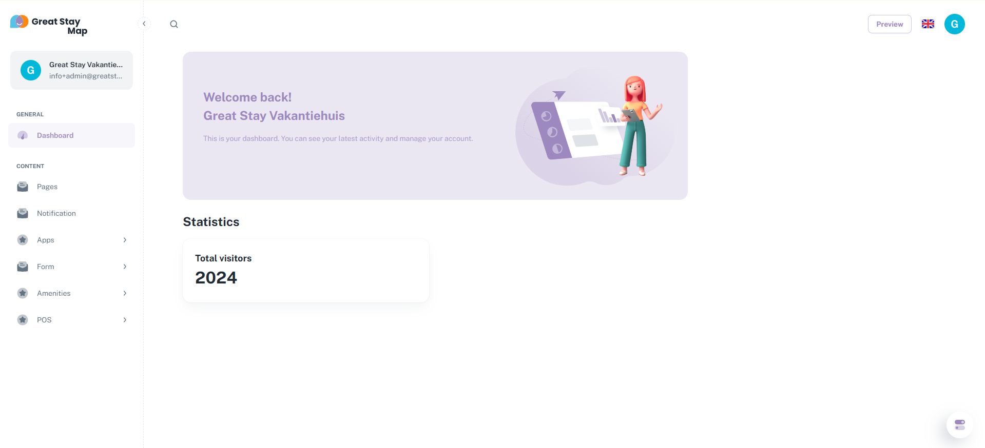 Is anything unclear, or do you have any other questions/comments? Is anything unclear or do you have any other questions/comments? Send us an email at office@greatstayapp.com, fill in our enquiry form or call us on +31 (0)85 40 15 336.